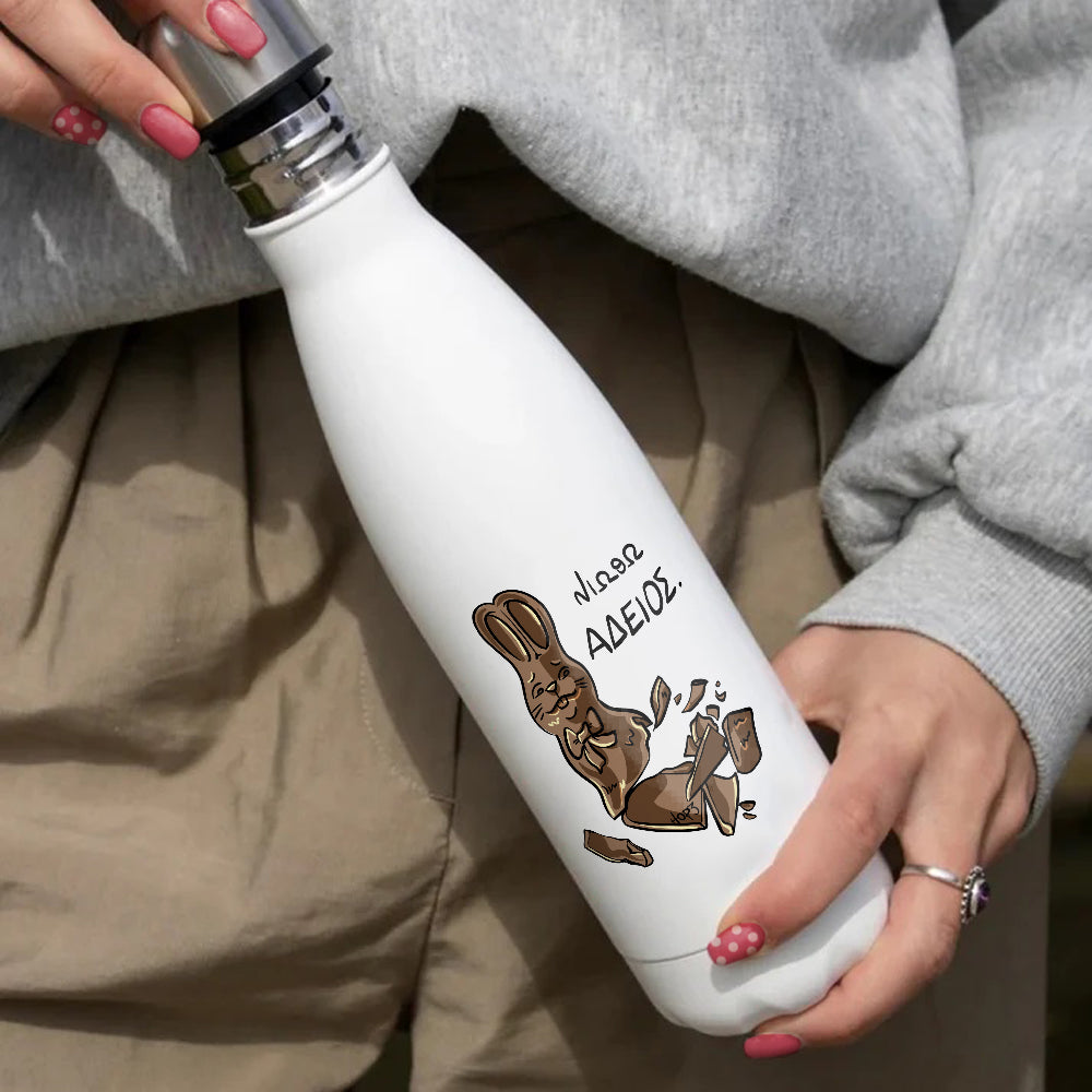 Ανοξείδωτο μπουκάλι τύπου θερμός με βιδωτό καπάκι. Μοναδικό σχέδιο ιδανικό για τις ημέρες του Πάσχα.
