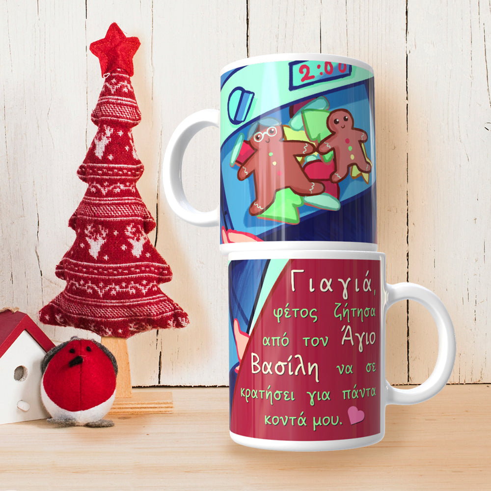 Κούπα πορσελάνης 330ml με σχέδιο 2 όψεων, για τα Χριστούγεννα ως δώρο στη γιαγιά.