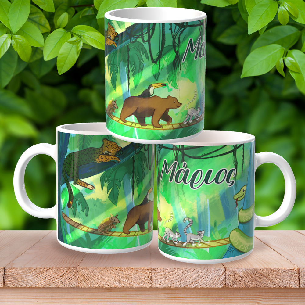 Χαρίστε στους αγαπημένους σας ένα ξεχωριστό αναμνηστικό από τη βάπτιση του μικρού σας με αυτή την υπέροχη κούπα με θέμα τη ζούγκλα!